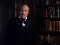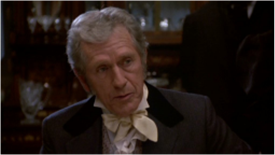 Der Butler Edward öffnet die Tür, als George Weihnachten 1864 überraschend nach Hause kommt.