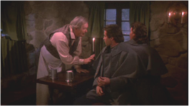 Justin.......................... (trinkt aus) Du bist immer so zurückhaltend. Aber heute Nacht nicht. (wird weggestoßen) Verdammt nochmal, Dir werd' ich zeigen, was es heißt, mein Weib zu sein! (nimmt sie mit Gewalt)