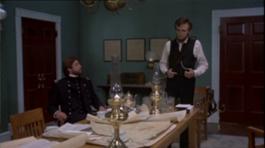 Links Kabinettsraum mit Nebenzimmer (Lincoln mit George), Mitte Empfangsbereich mit Türchen, rechts Besucherzimmer (Lincoln mit Constance)