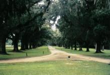 Boone Hall's present entry drive, north from Long Point Road, is parallel to and slightly east of the historic entry, which continued as the oak allee to the house. The first 800 feet of the drive runs along a sandy ridge, on which is a stand of about thirty large pecan trees, in regular rows in a mowed field. To the east and west the remainder of this grove is obscured by overgrowth; further to the east is the large Cathedral Grove, now untended. However, the trees in this small stand, like the pecan trees between the oak allee and slave street, are substantial in size, healthy in new growth, and partly draped with Spanish moss, conveying the sense of being a tended, productive orchard of one hundred years old.