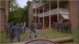Film: parade ground on front lawn real: Historic Jefferson College, west and east wings