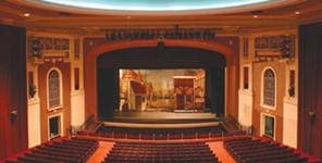Movie: entry of the marching band Real: Dock Street Theater, view from the stage
