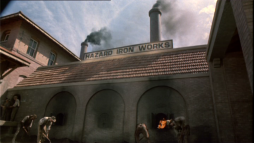 Filming for the foundry took place at the abandoned railroad depot of Natchez, MS at 220 State Street intersecting South Canal Street (Highway 84). The middle building with the boilers, the factory sign and the smoking chimneys were set up as a backdrop, also where the explosion took place. The existing buildings today are part of the Natchez National Historical Park.