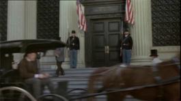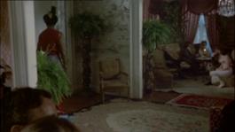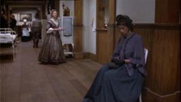 Green's courtesy to Virgilia after her speech was also filned in Dock Street Theater, this time on the lobby stairs to the gallery. The opening to this scene, a stone arched gallery with a sign reading "Ford's Theater" does not fit in here.
