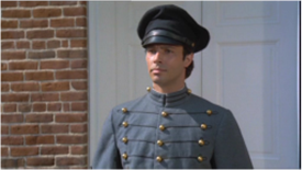 The cadet instructor arrogantly reprimates the new arrivals at West Point of 1842. Later, he sets punishment to Orry for poor performance at marksman training.